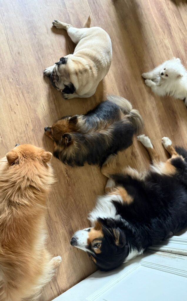 Sur de grands matelas confortables, je prends le temps de leur offrir des caresses, de l’attention et de l’amour. Parce qu’ici, il ne s’agit pas seulement de garder des chiens, mais de leur garantir un séjour heureux, apaisé et rempli de bien-être.